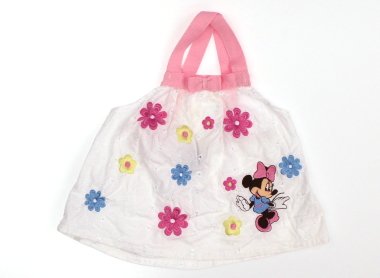 可愛いミニーちゃんの刺繍♪目立った汚れのない良品です。実際のサイズ表記は4Tですが、実寸平置きでバスト約23cm、総丈約25cmです。