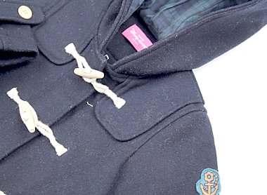 Tokyo Disney resoatのお品です。どっしりしたメルトンコート。裏なしで軽い仕立てです。ミニーちゃんのエンブレムがキュート。左胸に5ミリほどの穴があります(生地が重なっているヨーク部分)まだまだ普段着として活躍してくれそうです。