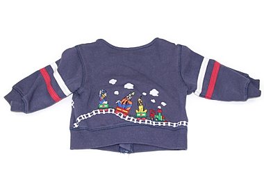 Disney parksのお品。裏起毛スウェット素材です。全体に色あせ・毛羽立ちがありますが刺繍はきれいでまだまだ活躍してくれそうです。実際のサイズ表記はEU6mです。(記名あり)