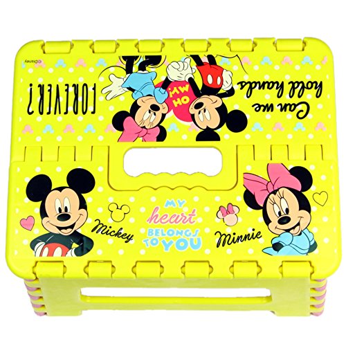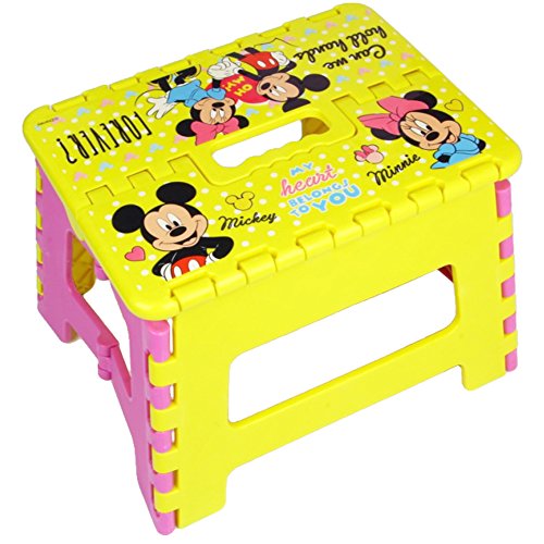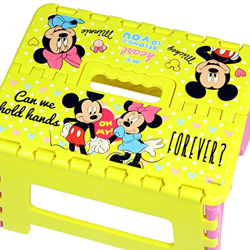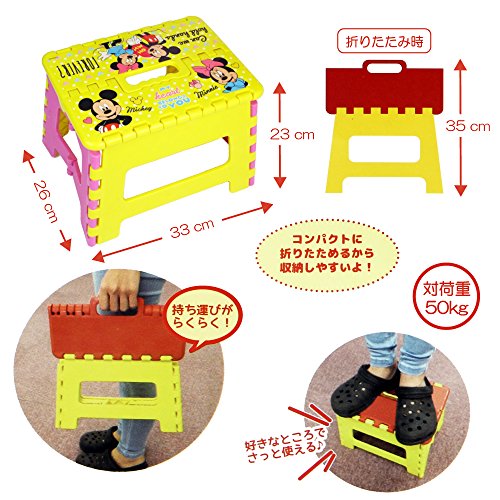 カワイイ キッズ 折りたたみ 踏み台 ミニタオルセット コンパクト に 収納 子供 用 持ち運び 椅子 チェア 男の子 女の子 プレゼント にも カラフル カラー で 可愛い 折り畳み ステップ イス (ミッキーミニー(イエロー/ピンク))