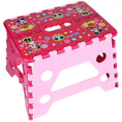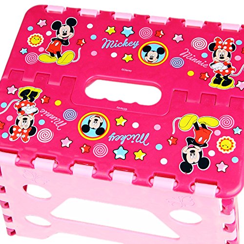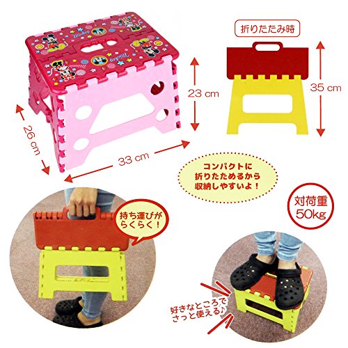 カワイイ キッズ 折りたたみ 踏み台 ミニタオルセット コンパクト に 収納 子供 用 持ち運び 椅子 チェア 男の子 女の子 プレゼント にも カラフル カラー で 可愛い 折り畳み ステップ イス (ミッキーミニー(レッド/ピンク))