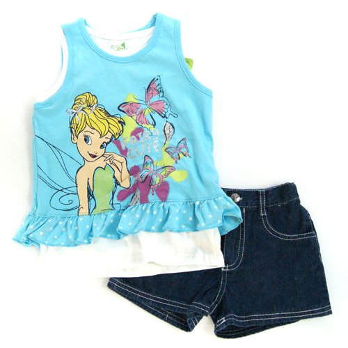 Disney ディズニー ティンカーベル 重ね着風ノースリーブカットソー&デニムセット - 6才