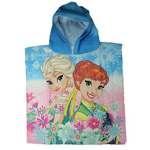 This adorable bath poncho featuring Anna and Elsa is perfect for summer;The large cotton design features a portrait of the two sisters surrounded by colourful flower;Wrap her up warm on the beach or after bath time with this fun towelling poncho;Size- 50 x 100 80% Cotton 18% Polyester 2% Viscose