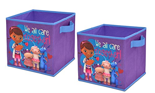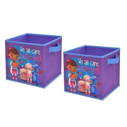 Product Description The Disney Doc McStuffins 10” Storage Cubes make a perfect addition to your child’s bedroom, closet, or playroom. The storage cubes are an easy way to maintain organization while adding a playful accent. Your little one will love to put away all their toys, books, clothing, and more in these spacious storage cubes featuring his or her favorite character. It's made of a soft canvas material with a sturdy steel frame and reinforced carry handles. Collapsible and lightweight, our storage cubes are perfect for storing just about anything. When not in use, it can fold down flat and be tucked away. They are also available in other Nickelodeon and Disney characters such as Minnie Mouse, Spongebob Squarepants, and Teenage Mutant Ninja Turtles. Never let children fold or unfold these cubes. This item is for storage only and should not be used as a toy. Children should not play inside of the cubes. Keep away from open flame. Easy to clean using a damp cloth. Discontinue use if frame is bent or broken. Do not drag storage cubes on the floor. Do not give to children under 3 years of age due to loose parts. From the Manufacturer The 2-Pack Disney Doc McStuffins Storage Cubes are a practical way to keep your space organized. The cubes are very versatile and can add both organization and decoration to nearly any area. The set includes two storage cubes with a Doc McStuffins design and handles for easy carrying. Perfect for toy storage, laundry, books, bathroom storage and more. The 2-Pack Disney Doc McStuffins Storage Cubes can help make organizing your child's room easy and fun. Dimensions: 10' x 10' x 10'.