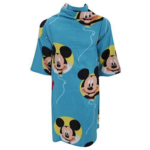 (ディズニー) Disney キッズ子供用 ミッキーマウス 袖付きあったか着る毛布 フリースポンチョ フリースローブ ローブブランケット あったかフリース毛布 (90cm x 120cm) (ブルー)