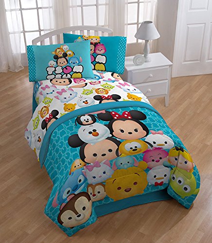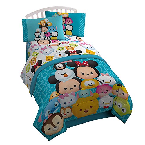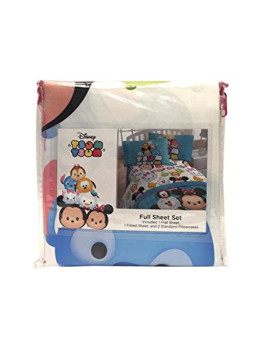 Color:Teal Full Sheet Set Transform any child's bedroom with a Disney Tsum Tsum Mash Up Teal super soft microfiber sheet set. This fun and colorful bedding sheet set will make any child smile. Each 4 piece, super soft microfiber full sheet set includes a fitted sheet, flat sheet and two standard reversible pillowcases. The bold colors and exciting design will enhance the existing decor of any kid's or toddler bedroom. Fitted sheet measures 54' x 75', flat sheet measures 81' x 96' with two 20' x 26' standard pillowcases. Decorative bedding features popular characters and icons from Disney. 100% polyester. Easy care, machine wash cold, tumble dry low. Imported
