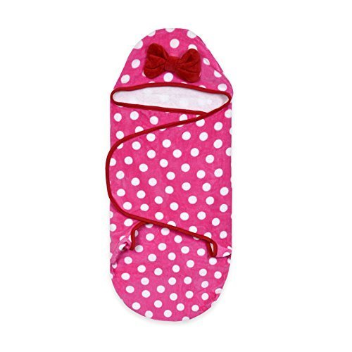 Designed to wrap securely around your baby; perfect for drying off in soothing comfort, Slip the hood over Baby's head, tuck legs into the leg pocket, and wrap the wings across the body, Designed in pink with white polka dots; detailed with red trim, Dimensions: 37 x 25 inches, Machine wash cold, tumble dry low