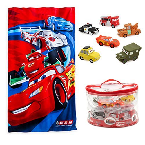 Disney Cars Bath Toys & Towel Set - Deluxe 6 Piece Squeeze Bath-Pool Toys & Beach Towel Bundle [並行輸入品]