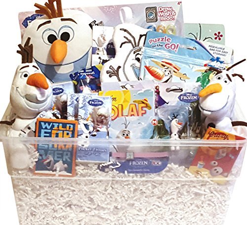 We've done all the work for your convenience! All your favorite Disney Frozen Olaf items all in one Sterilite plastic container. We have shrink wrapped it and it's ready for your gift gifting!