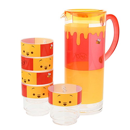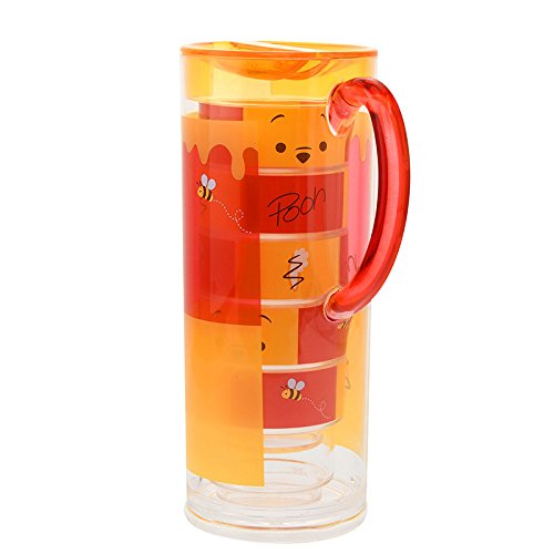 持ち運びも収納もラクラク♪スタッキングできるコップとピッチャーのセット。プーさんをモチーフにしたポップなデザインです。プラスチック製なので軽くて扱いやすいのもポイント。使わない時にはピッチャーの中にコップをしまえるので省スペースでOK。行楽シーンにもオススメです♪