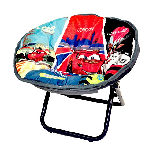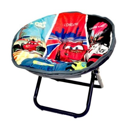 Featuring a unique Disney Cars 2 design, your child can enjoy their favorite book or television show while sitting comfortably on their Cars 2 Saucer Chair. Its saucer shape makes it the perfect for lounging and relaxing. The saucer chair is made out of a sturdy metal frame with a polyester cushioned seat for extra comfort. The chair is also available in other Disney and Nickelodeon characters including Doc McStuffins, Teenage Mutant Ninja Turtles, and Planes. Polyester cushioned seat is spot clean only. When not in use, the saucer chair can fold together, and with its plastic bag and lightweight composure, it is ideal for storage and travel. It’s the perfect size for toddlers and small children. Plastic bag is not a toy, and it should be kept away from babies and small children to avoid suffocation. Maximum weight is 81 pounds. Personal injury can result if the chair is subjected to higher loads than 81 pounds. Do not use this chair on unlevel ground. To avoid injuries to fingers, use care when folding this chair. Dimensions: 18" W x 16" H x 14" L