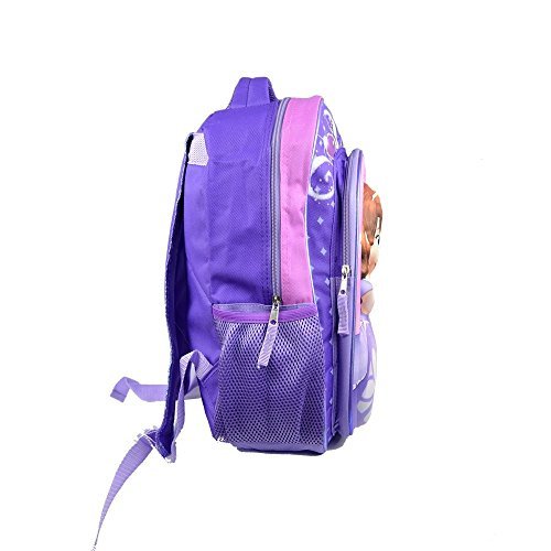 This Disney Sofia the First backpack features a 3D version of Sofia on the large front pocket. Side mesh pockets Front pocket with zipper Adjustable shoulder straps Color: Purple
