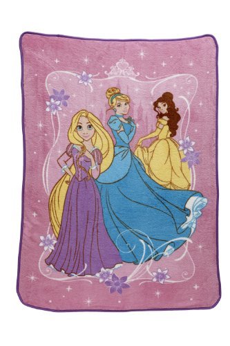 This adorable blanket by crown crafts features princess Rapunzel, Cinderella and bell - all dressed to shine! It has whimsical shades of pink, lavender, blue and yellow. Coordinates with the "dress to shine" collection. Measures 30" x 45". 100% polyester. Machine wash separately in cold water, gentle cycle. Use only non-chlorine bleach when needed. Tumble dry on low heat. Iron on low heat when needed. Coordinates with the "dress to shine" collection. Measures 30" x 45". 100% polyester. Machine wash separately in cold water, gentle cycle. Use only non-chlorine bleach when needed. Tumble dry on low heat. Iron on low heat when needed.