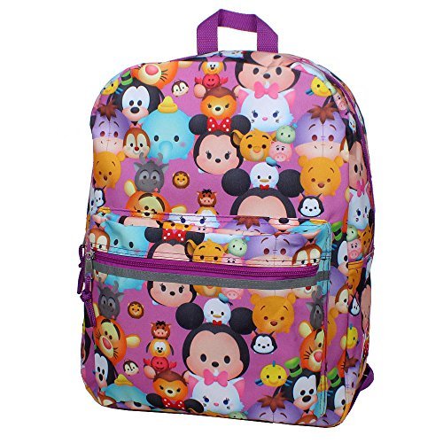 Tsum Tsum Stack on Stacks backpacks. Featuring Minnie, Mickey, Tigger and many more. This backpack contains a padded back and strap with side mesh pockets with a double zipper for convenience .