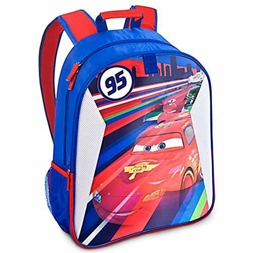 Animated lenticular art features Lightning McQueen, Francesco Bernouili, and Shu Todoroki PVC ''95'' appliqu? Accessory loop with self-stick fabric closure Interior ID label (mark with permanent ink pen, not included) Part of our Cars Back to School Collection CAUTION: Entanglement hazard. Keep away from very young children. Do not place around neck.
