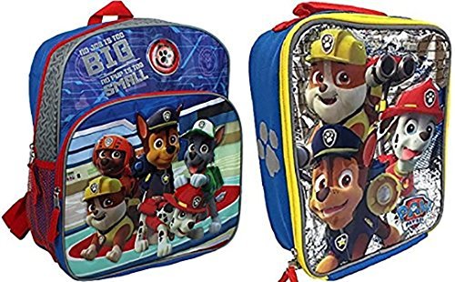 This Paw Patrol Backpack and Lunchbox set will have your little one ready for action! The backpack features screen art of Marshall, Rubble, Rocky, Zuma and Chase with a front zippered pocket and a water bottle holder on each side. The lunchbox is insulated and features Marshall, Rubble and Chase.