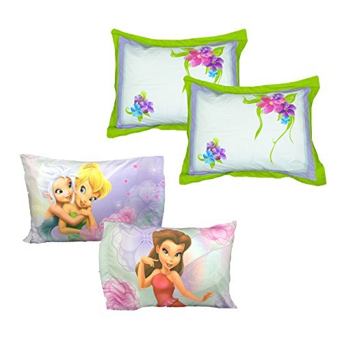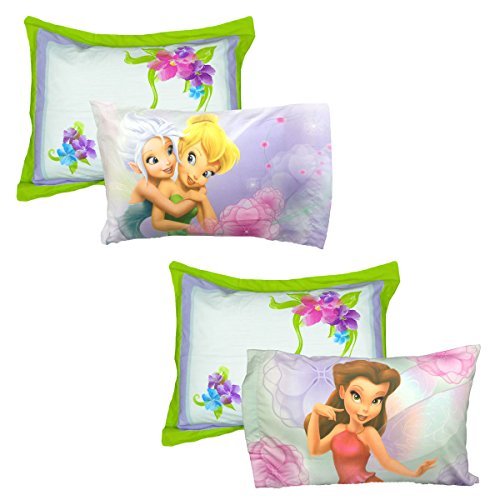 Bring the magic of the Disney fairies to your little one's space with this vibrant pillowcase and pillow sham set! The reversible pillowcases feature Tinkerbell, Periwinkle, and Rosetta on a beautiful floral background. The pillow shams have watercolor inspired flowers that coordinate perfectly with the pillowcases. They're a lovely addition to any fairy bedroom! CONTENTS: Two standard pillowcases, each with a finished size 20 x 30 inches (50.8 cm x 76.2 cm). Two standard size pillow shams, each with a finished size of 20 x 30 inches (50.8 x 76.2 cm) to fit a 20 x 26 inch pillow.
