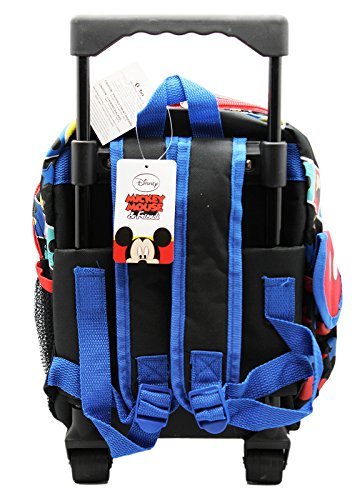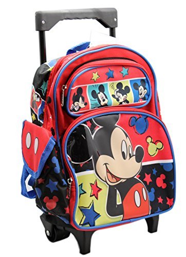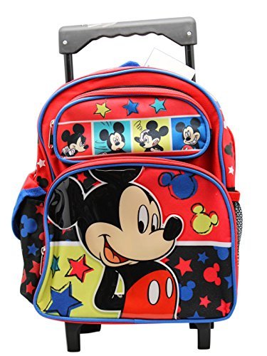 Even Mickey can get upset sometimes! ; Mickey Mouse rolling backpack; Small kids size; Features 3 compartments, along with a velcro and mesh side pouch; Officially licensed product; Measures 12in (30.5cm) tall and 10in (25.5cm) wide