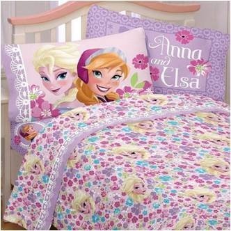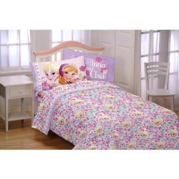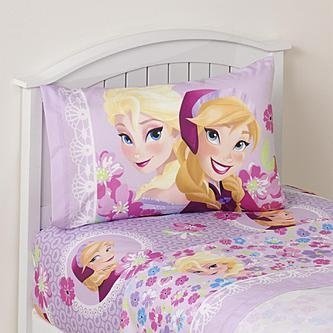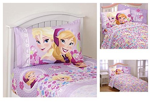 This 3 piece Disney Frozen Love Blooms twin sheet set is perfect for any little girls room. The cotton rich set is made from soft and comfortable 60% cotton / 40% polyester and includes a fitted twin sheet, twin flat sheet and standard pillow case. With vibrant colors, Anna and Elsa logo graphics, and floral motifs and borders this set is truly unique. The pillowcase is designed with a unique Disney Frozen graphic on each side to give the set a fun and unique appeal depending on your mood. This Disney Frozen sheet set may be added to a comforter, pillow, blanket and wall decals to create a fun Disney Frozen experience for her. Machine washable