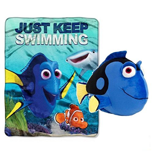 From the newest Disney / Pixar movie Finding Dory, give her the bedding accessory set of her swimming dreams! Plush throw blanket is perfect snuggling up and watching her favorite movie, traveling or accent to her bedding! Dory pillow buddy can be used as a pillow or snuggling. Spot clean only.