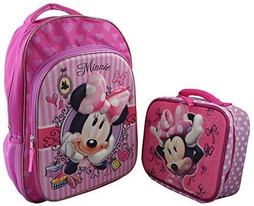 Disney Minnie Mouse Girl's3D Pop out Large 15.5" Backpack with 3D Pop out Lunchbox [並行輸入品]