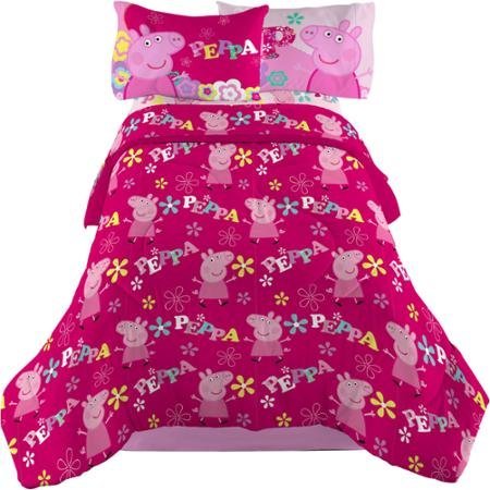 Peppa Pig Comforter in Pink Full Sheet Set (1 Fitted Sheet, 1 Flat Sheet and 2 Standard Size Pillowcases). Reversible comforter measures 72" x 86" Comforter reverses to a pink ground and a tossed Peppa Pig pattern Exclusive Linens N Beyond LED Simple Touch Key Chainern.