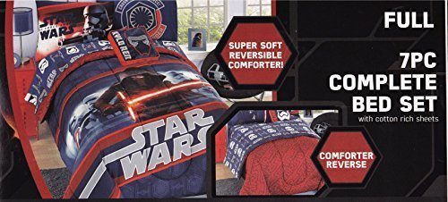 Star Wars 7pc Complete Bed Set with Cotton Rich Sheets. Super Soft Reversible Comforter Full Size 1 Full Comforter 1 Standard Sham 1 Decorative Pillow 1 Flat Sheet 1 Fitted Sheet 2 Standard Pillowcases