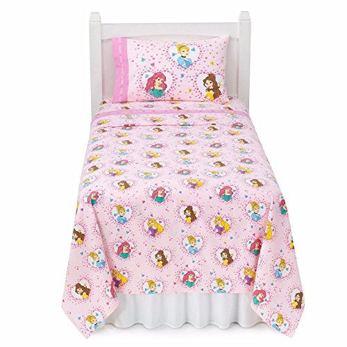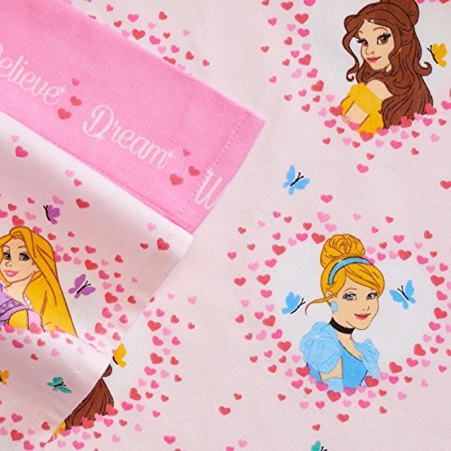 Disney Princess Twin Size Heavyweight 3-Piece Flannel Sheet Set, Pink Hearts [並行輸入品]