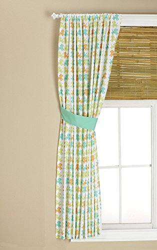 The perfect finishing touch Disney baby lion king decorative window panel to coordinate with the Disney baby lion king bedding collection. Measures 63' long x 41' wide and fits most standard size windows. Rod pocket top. Includes a solid mint green tie-back (one).