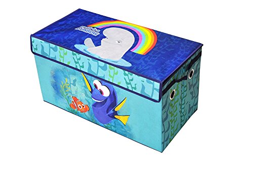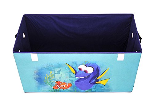 The Finding Dory Collapsible Storage Trunk makes a perfect addition to your child's bedroom, closet, or playroom. The storage trunk is an easy way to maintain clutter while adding a playful accent. Your little one will love to put away all their toys, books, clothing and more in this spacious storage trunk featuring his or her favorite character. It's made of a soft canvas material, so you never have to worry about the lid slamming down. Collapsible and lightweight, our storage chests are perfect for storing just about anything. When not in use, it can fold down flat and be tucked away. Dimensions: 30-Inch L x 14.5-Inch H x 16-Inch W.