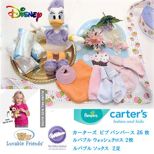 出産祝い おむつケーキ ディズニー ディジーダック カーター ビブ 女の子 パンパース 26枚 DK2124-Sズ
