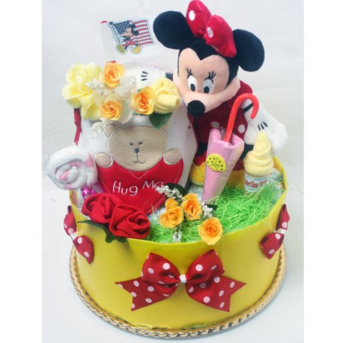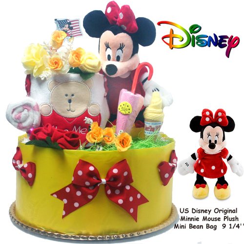 - US DISNEY からやって来ました! 【ライセンス商品とは違います】ディズニーオリジナル・ミニーマウス 日本のディズニーストアーでは手に入りません。女の子の出産祝いに最適な「オムツケーキ」は高さ約25cm