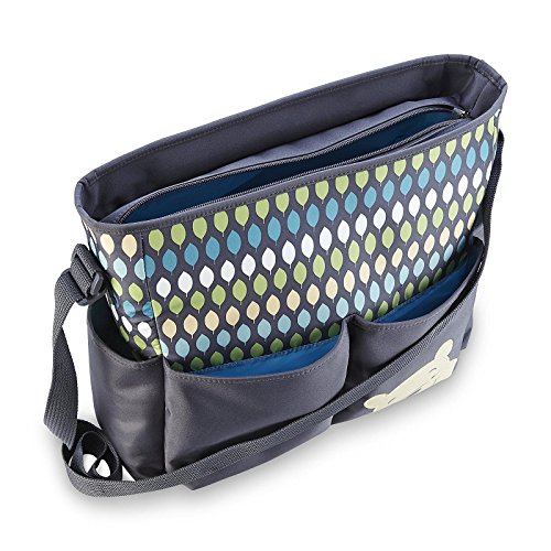 Set: Diaper bag, changing pad and accessory pouch;Bag: Tote-style, top zip closure, multiple pockets, embroidered applique;Fold-over changing pad;Clear accessory pouch;Woven construction...