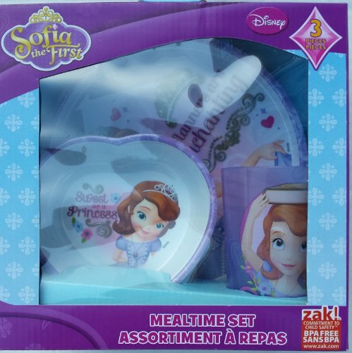 Disney Sofia The First Mealtime Set includes bowl, plate and tumbler;BPA free, made of 100-percent melamine;Disney design makes mealtime fun;Dishwasher safe; do not microwave;By Zak Designs, making mealtime fun
