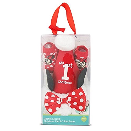 Disney Baby Girls' Hat and Sock Set Minnie 1st Christmas/ディズニー初めてのクリスマス帽子と靴下セット [並行輸入品]