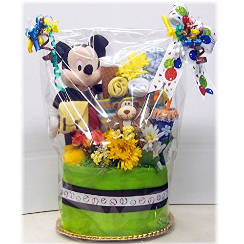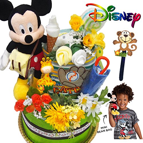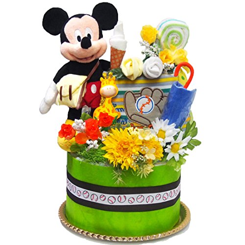 出産祝い おむつケーキ ディズニー ミッキーマウス がプレイーボール!可愛いベビーグッズでデコレーション 男の子 パンパース 26枚 オムツ ケーキ GIFT M