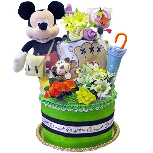 出産祝い おむつケーキ ディズニー ミッキーがプレイーボール! 男の子 パンパース 26枚 オムツ ケーキ DK2101A-S
