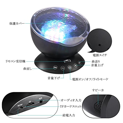 - ♪【音楽プレーヤー】海洋プロジェクターにはスピーカーが内蔵されていますので、付属の3.5mmオーディオケーブルを使用して、TFカードを挿入して音楽を再生したり、iPod、MP3、ラップトップ、携帯電話などに接続できます。楽しい雰囲気の中であなたの好きな音楽をお楽しみください。