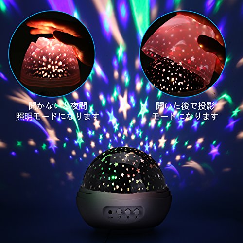 - 【360度回転】回転モードを切り替えることにより、夜空を360度回転させ、星空を自動的に浮動させることができます。そして いつでも部屋にロマンチックな雰囲気を作り出すことができます。室内用スタープロジェクター、ご家庭で手軽にプラネタリウムを楽しめる。