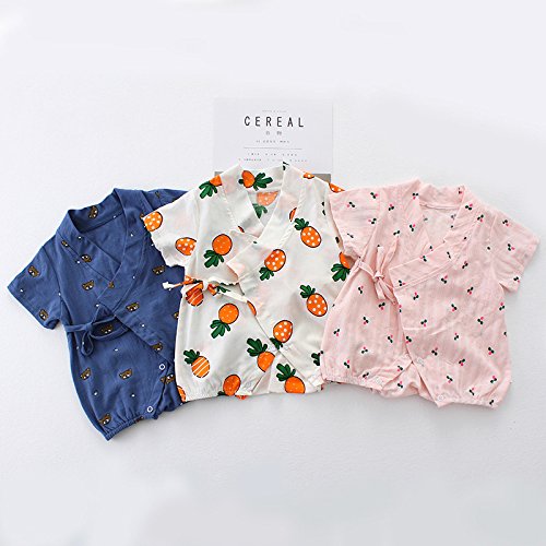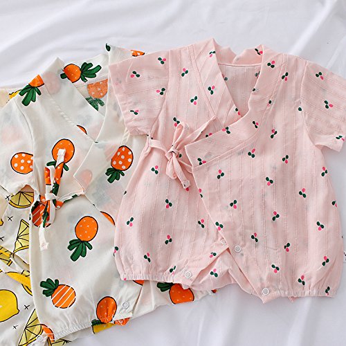 Dizoon 夏 甚平 ロンパース ベビー 新生児 男女兼用 女の子 綿麻 カートゥーン 果物 白 灰 青 ピンク 66 73 80 90cm