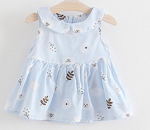 Dizoon 春夏 子供 ベビー キッズ 女の子 ワンピース ドレス スカート 可愛い服 3デザイン いちご 花柄 ピンク/ブルー ホワイト 80 85 90 100cm 6-36ヶ月 (85cm, ブルー)