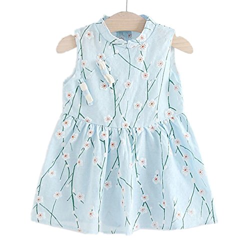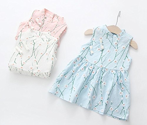 Dizoon 春夏 子供 ベビー キッズ 女の子 ワンピース ドレス スカート 可愛い服 花柄 ピンク ブルー 白 80 85 90 100cm 6-36ヶ月