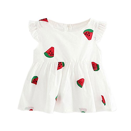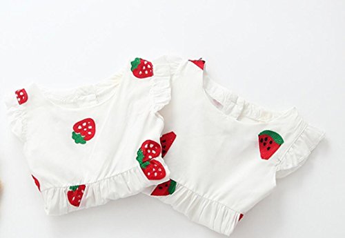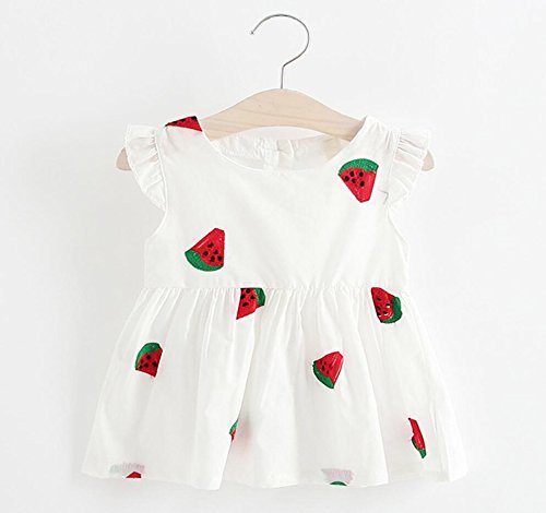 Dizoon 春夏 子供 ベビー キッズ 女の子 ワンピース ドレス スカート 可愛い服 イチゴ 白 80 85 90 100cm 6-36ヶ月