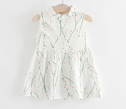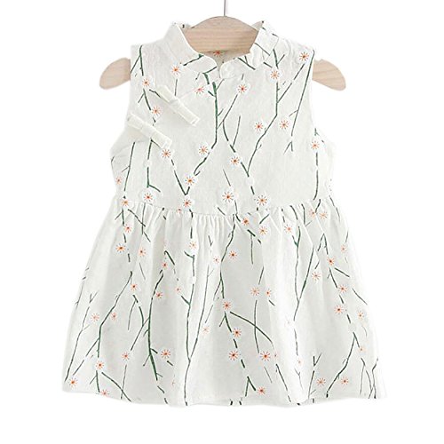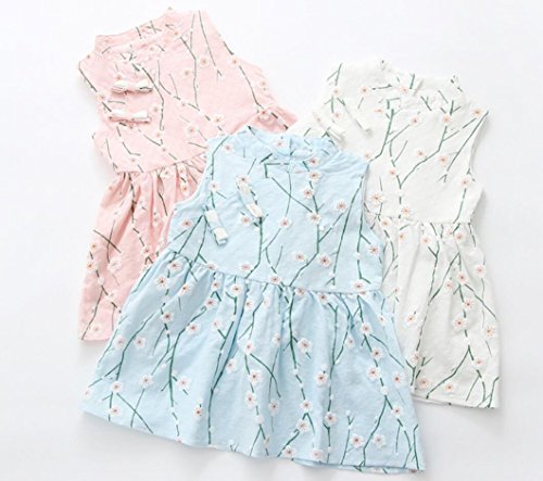 Dizoon 春夏 子供 ベビー キッズ 女の子 ワンピース ドレス スカート 可愛い服 花柄 ピンク ブルー 白 80 85 90 100cm 6-36ヶ月