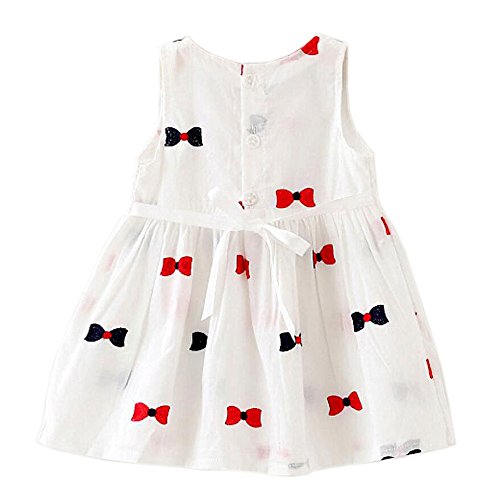 Dizoon 春夏 子供 ベビー キッズ 女の子 ワンピース ドレス スカート 可愛い服 蝶?び 白 ピンク 80 85 90 100cm 6-36ヶ月