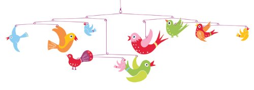 このモビール「バタフライ」はポップで可愛らしい鳥をモチーフにしています。大空を自由に駆け回る光景が想像できますね。