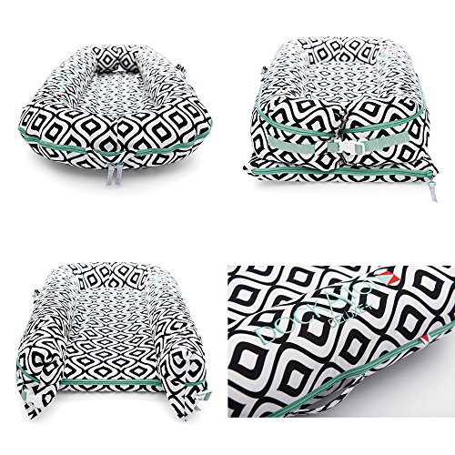 - 軽量で目的や用途に合わせて持ち運びができるクッションのようなベビーベッド。