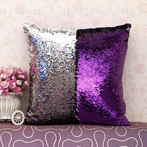 Doinshopファッションスパンコールマーメイド枕カバーDIYダブルカラーGlitter Magical Color Changing枕カバーカフェホーム装飾クッションカバー 16X16 inch Doinshop-888