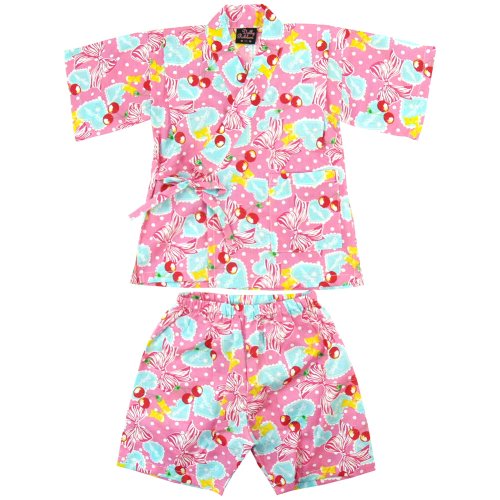 Dolly Ribbon リボンとハート柄甚平スーツ 90cm /ピンク BR-138814