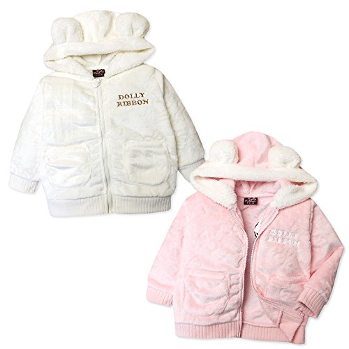 (アイボリー/90cm)ベビー服 女の子 アウター フルジップ パーカー ジャケット Dolly Ribbon ドーリーリボン フリース 耳付き リボン型エンボス 刺繍ロゴ 女児 ベビー